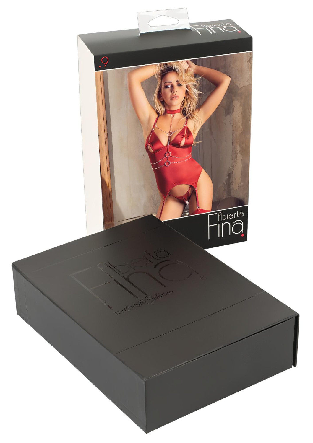 Neįtikėtinas ir seksualus komplektas, kuris tikrai sužavės - Abierta Fina blizgus grandinėlių viršus ir stringai (raudoni)!