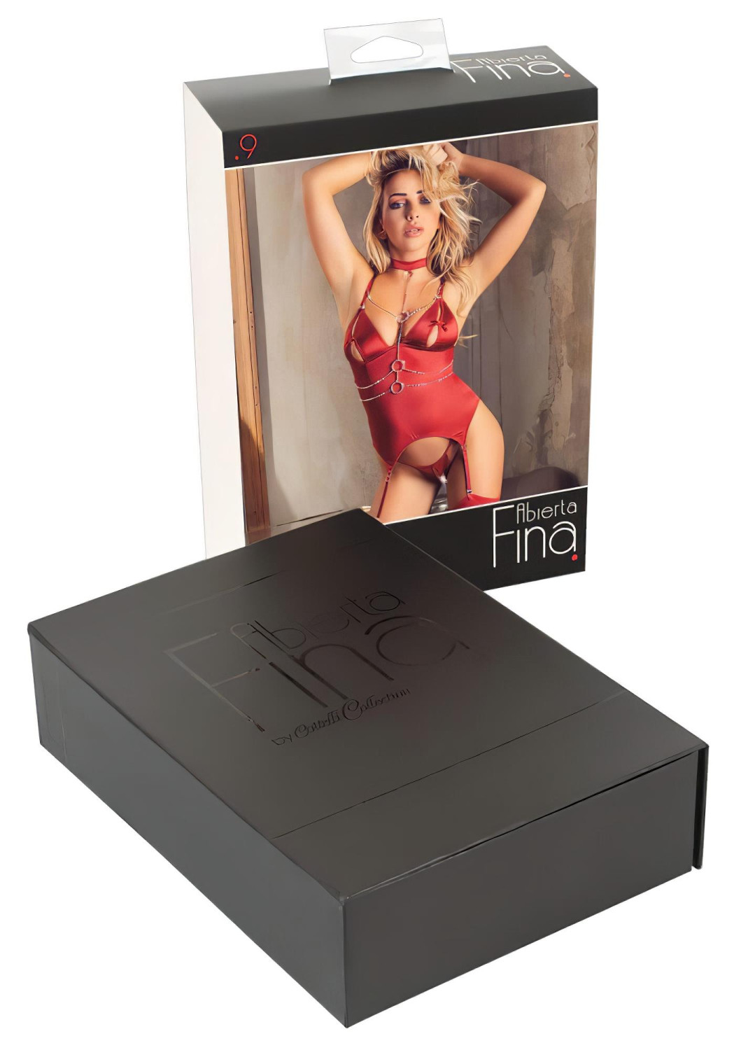Neįtikėtinas ir seksualus komplektas, kuris tikrai sužavės - Abierta Fina blizgus grandinėlių viršus ir stringai (raudoni)!