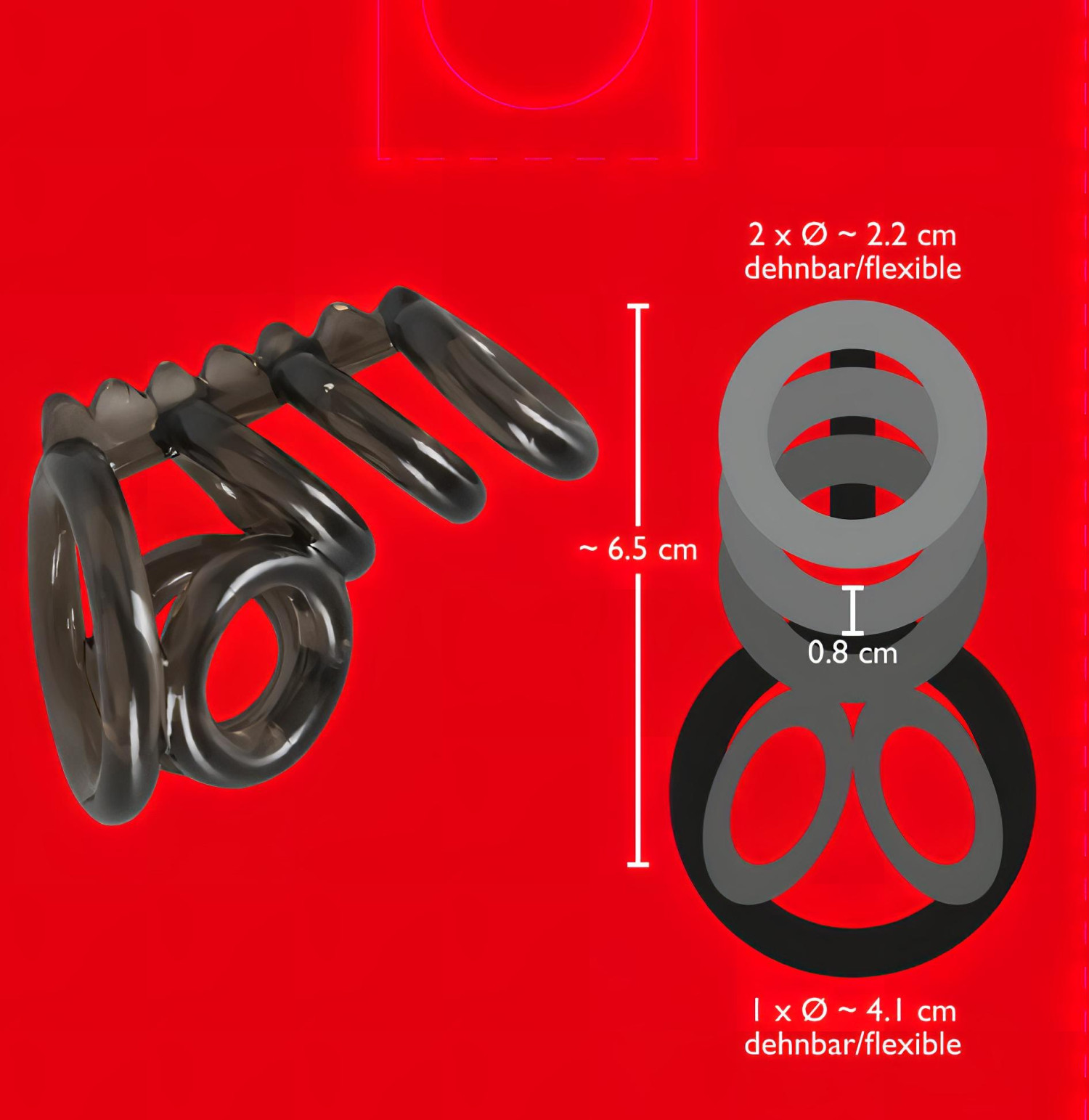 • 4 žiedai veikia lyg šarvai - padeda pasiekti tvirtą, ilgiau trunkančią erekciją