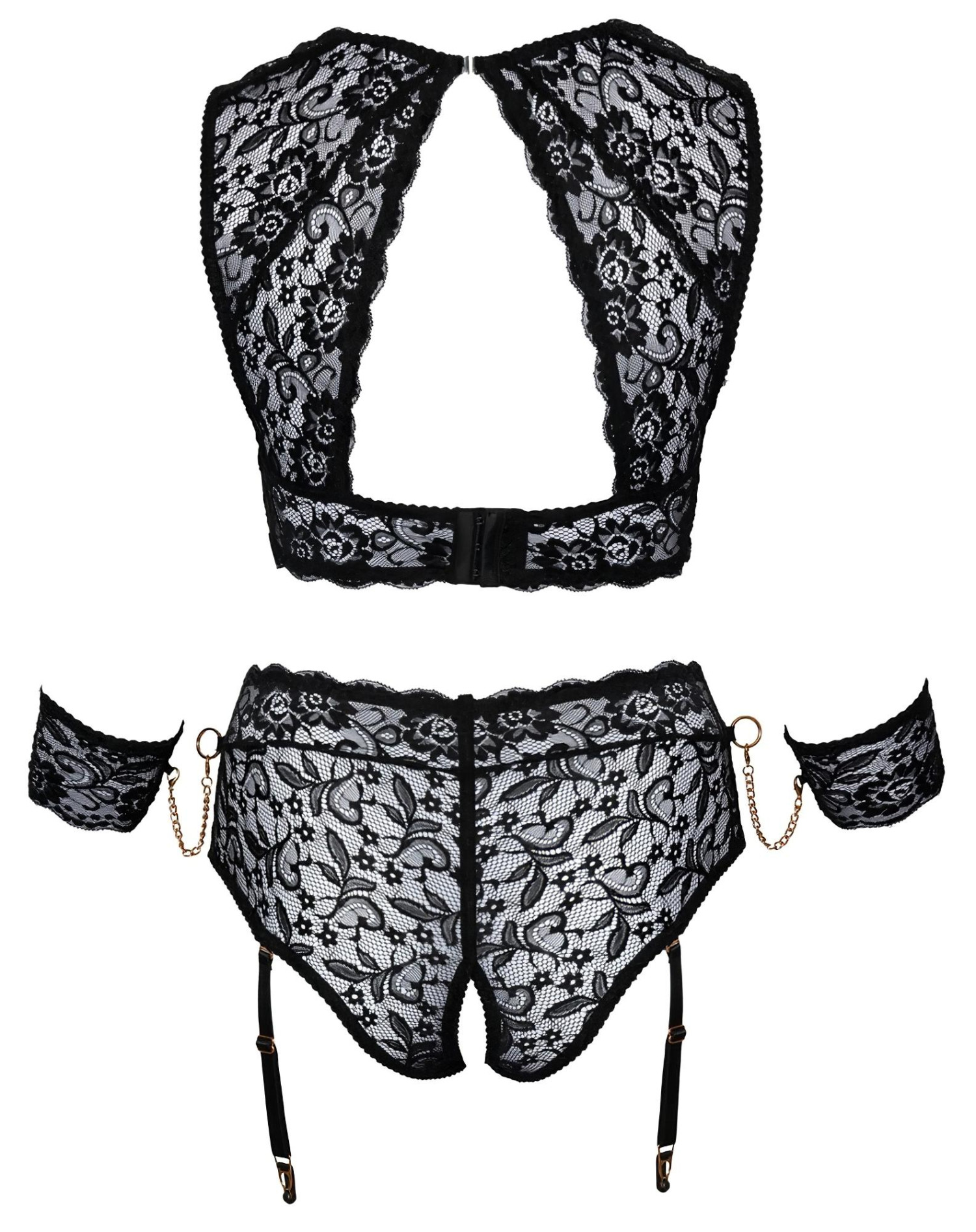 Nuomonės Cottelli Bondage Plus Size - nėriniu liemenėlės komplektas (juoda) - 3XL