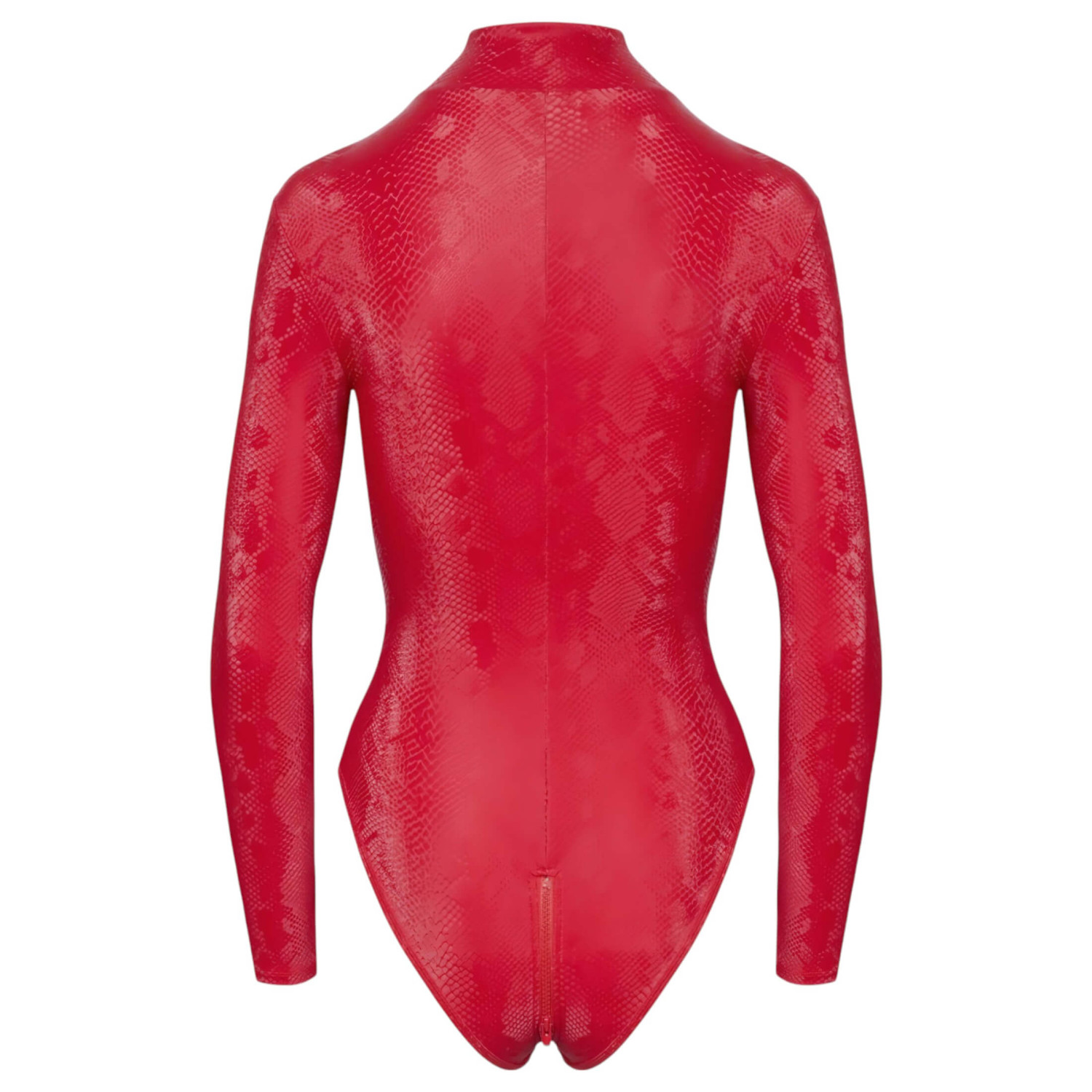 PARTY kolekcijos siauras ir pašėlęs bodis stilingu raudonos gyvatės odos efektu.