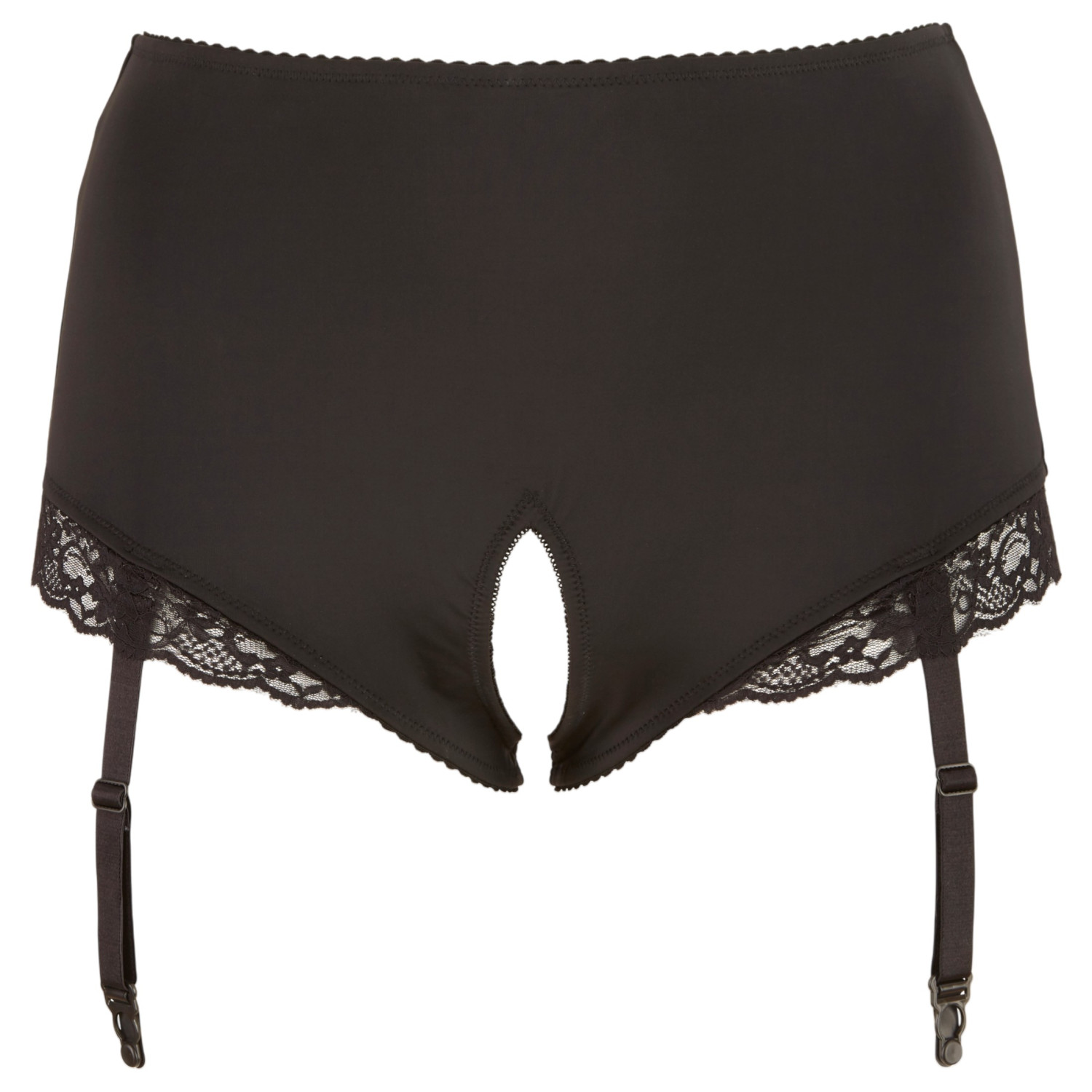 Cottelli Plus Size - atviras kelnaitės su prisegamomis kojinėmis (juoda) - 3XL