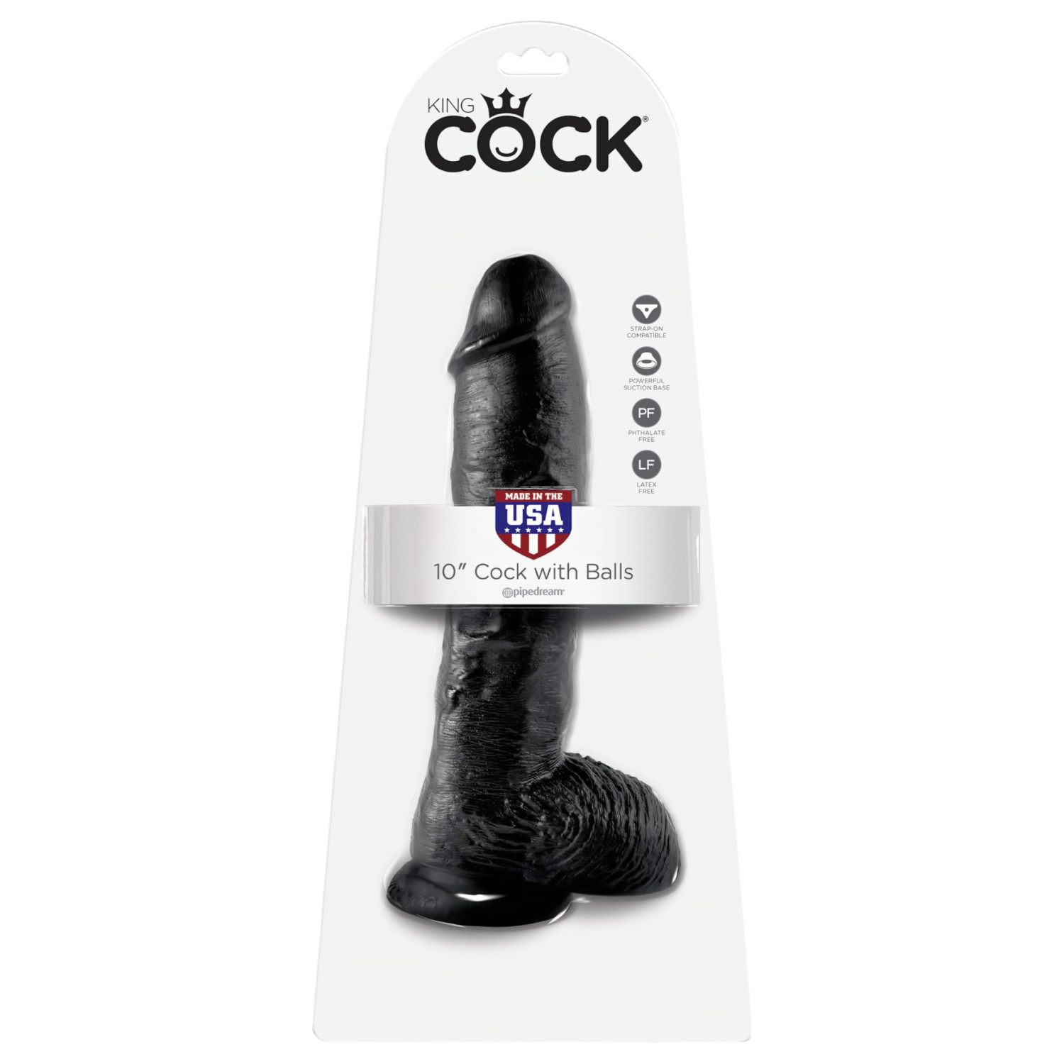 King Cock 10 sėklidžių dildo (25 cm) - juodas
