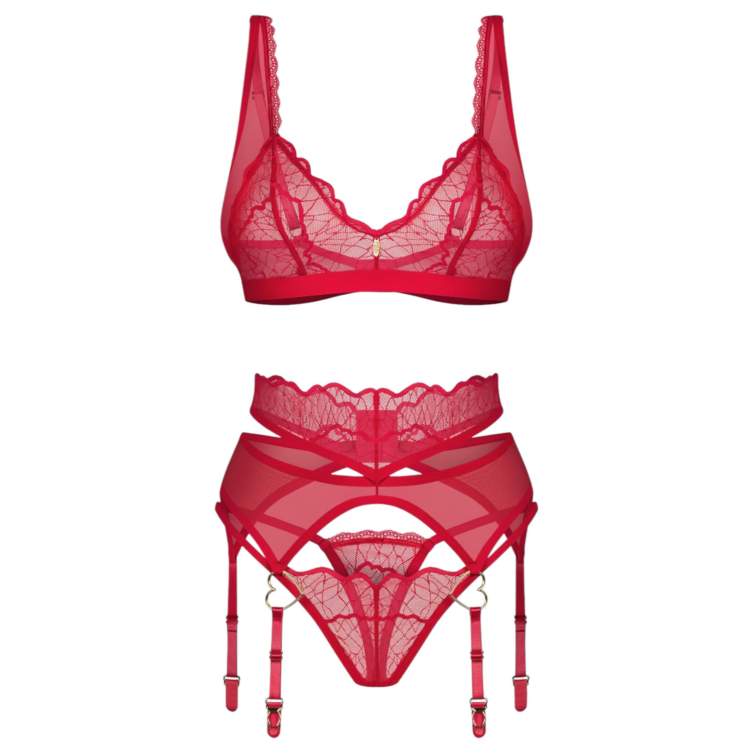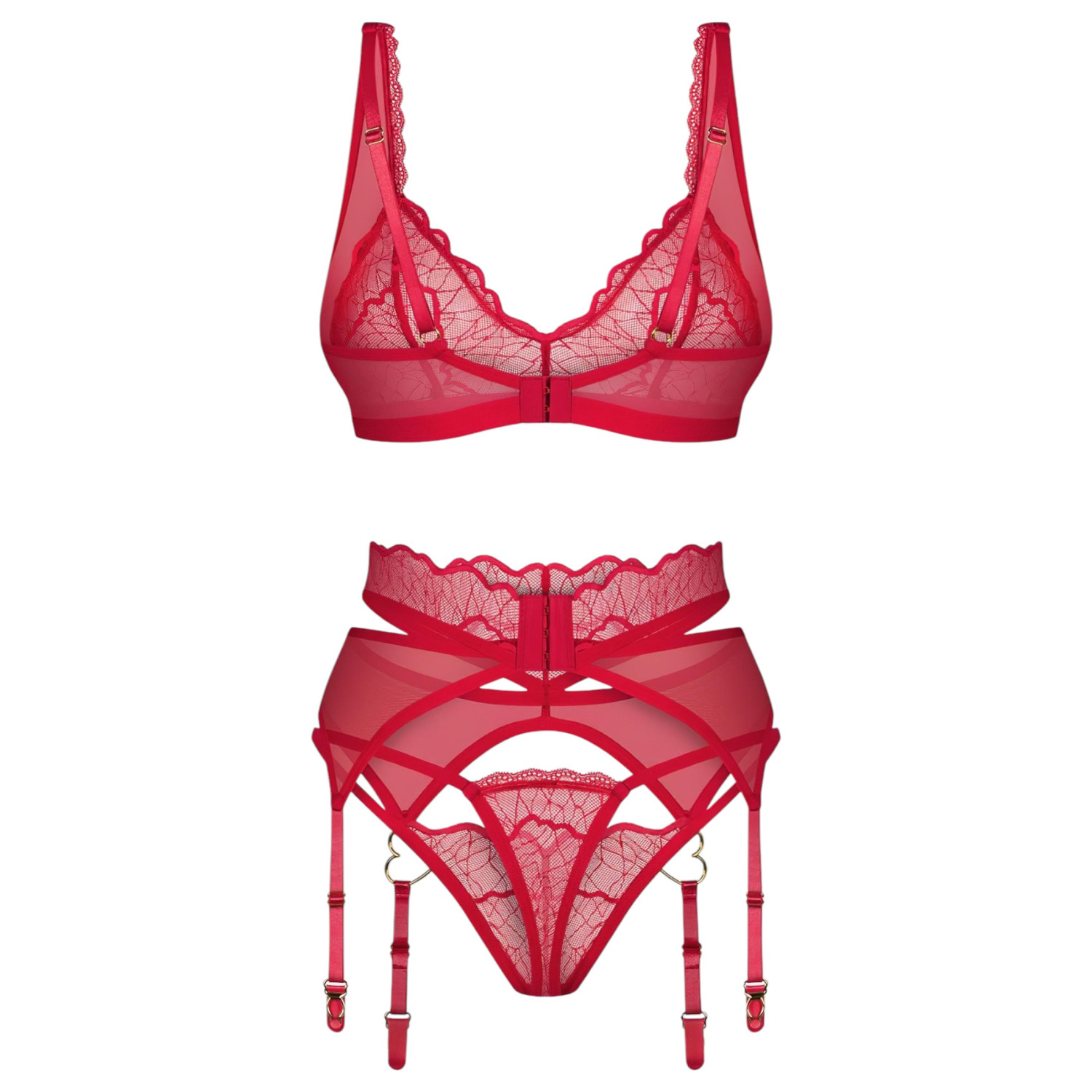 Obsessive Cupid Desir - nėriniuotas apatinio trikotažo komplektas (raudonas) - L/XL