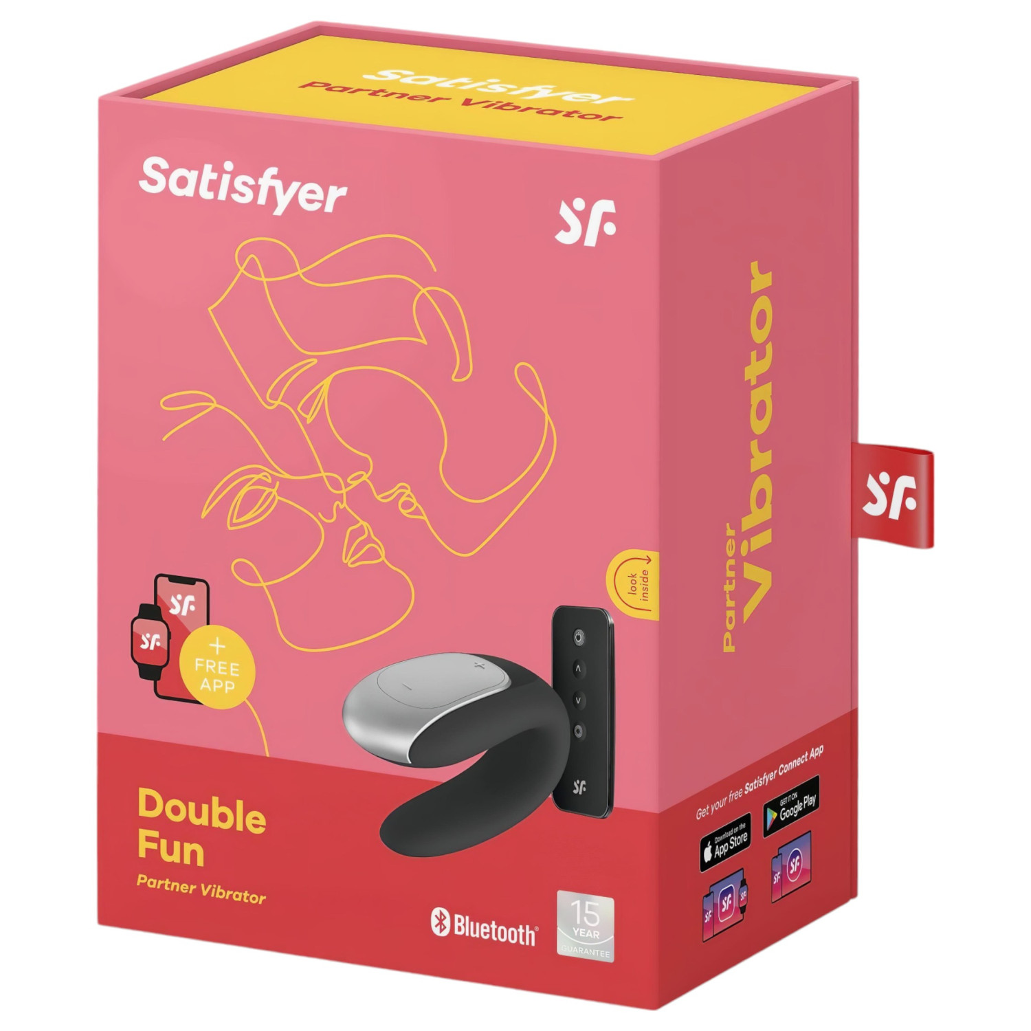 Satisfyer Double Fun - išmanus, atsparus vandeniui porų vibratorius (juodas)