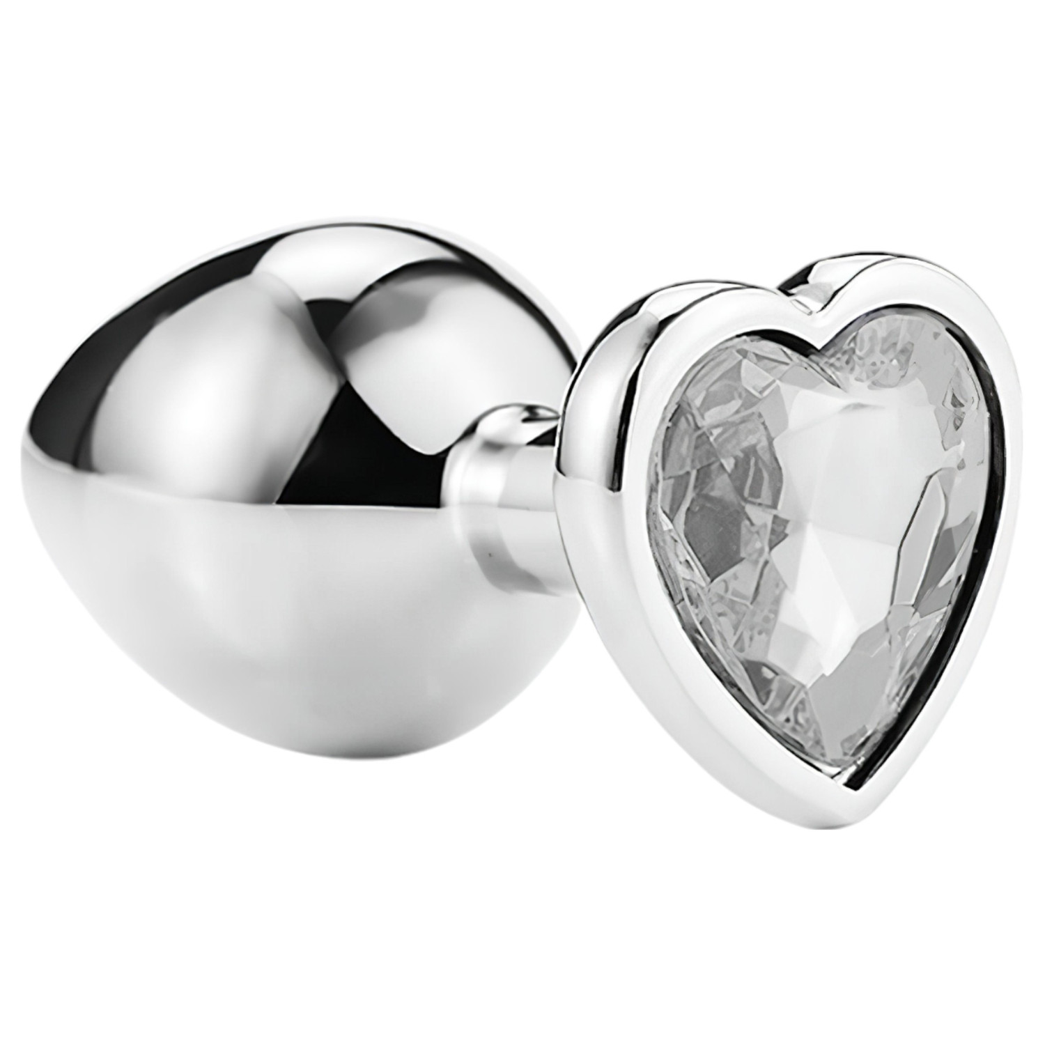 Sunfo - metalinis analinis kaištis su širdelės formos akmeniu (sidabrinis-baltas)