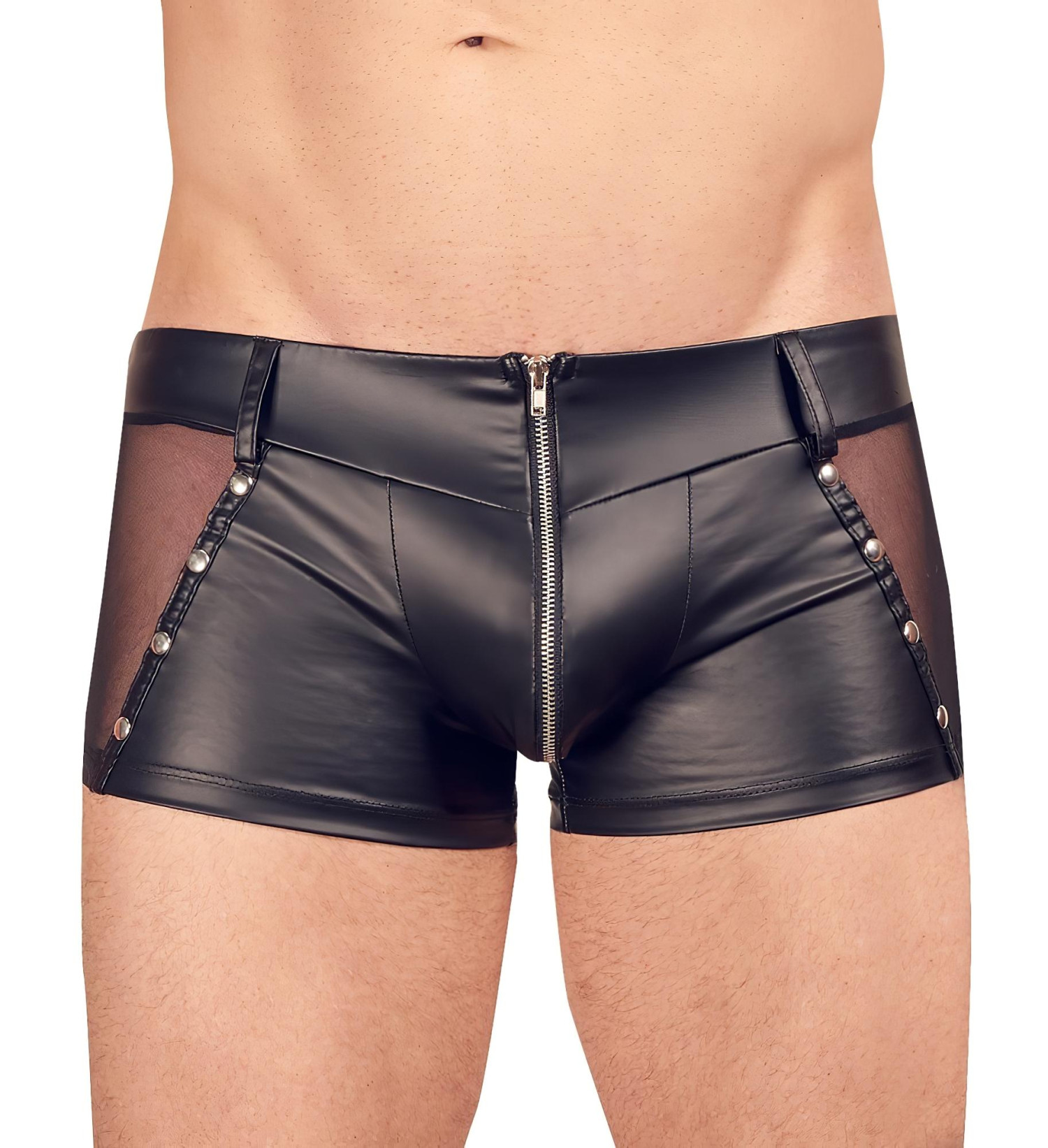 Ekstremaliai seksualūs vyriški bokseriai su kniedėmis ir permatomomis detalėmis - gali būti dėvimi ir kaip pikantiški šortai!