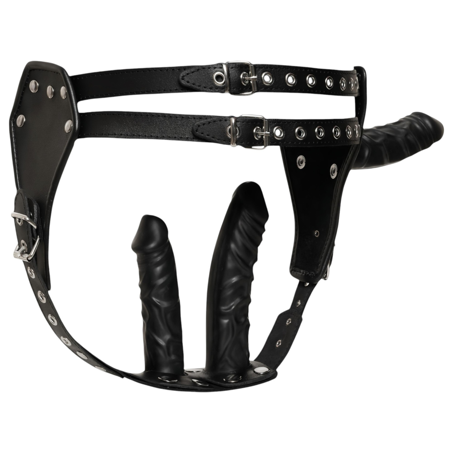 Nuomonės ZADO - odinė apatinė dalis su 2 vidiniais dildo (juoda) - L/XL